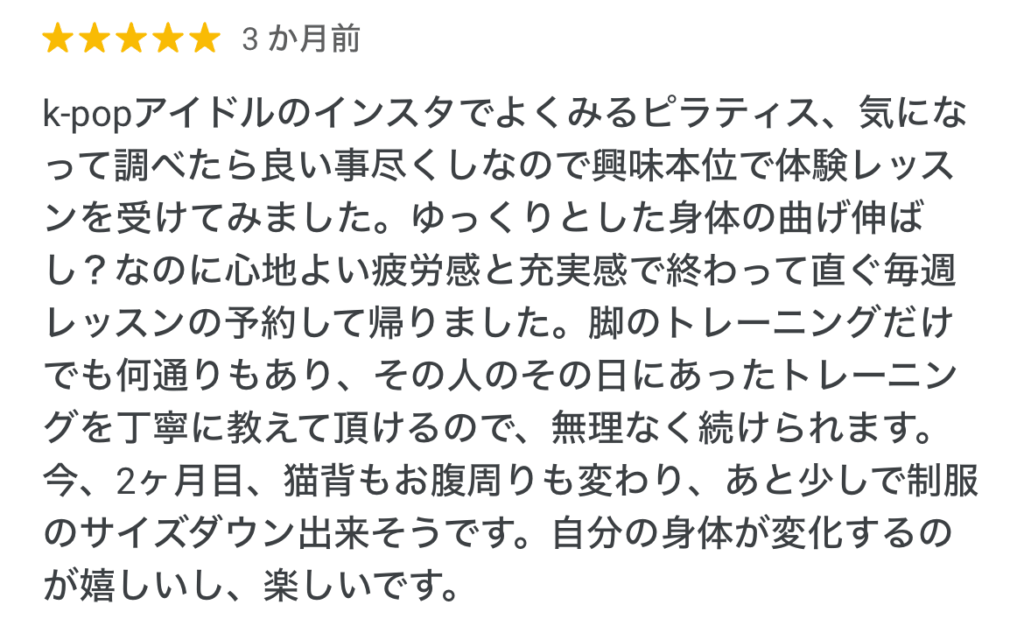 ピラティスに興味を持ったのは、好きなK-POPアイドルが楽しそうにトレーニングしている姿を見たのがはじまりでした。