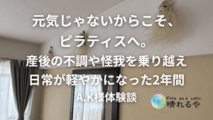 その後、ピラティスが少しずつメジャーになり、新しく運動できる場所を探していたときに「晴れるやピラティス」を見つけました。